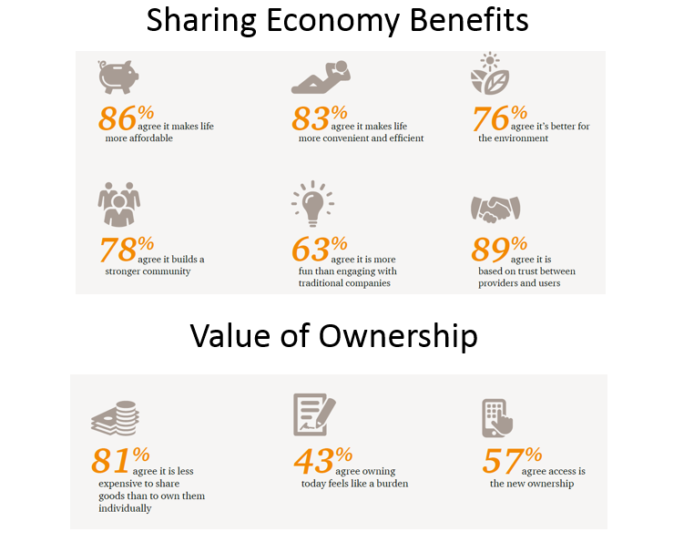 A wave of peer-to-peer, access-driven businesses has become a disruptive force in a slew of industries, ranging from travel to car rentals to consumer goods to employment to finance. Even insurance has been touched. And the disruption may be long-term if the new businesses change consumers’ attitudes towards ownership. A recent PwC study revealed that 81 percent of people familiar with the sharing economy believed that it is less expensive to share goods than to own them individually. Another 57 percent asserted that access is the new ownership.