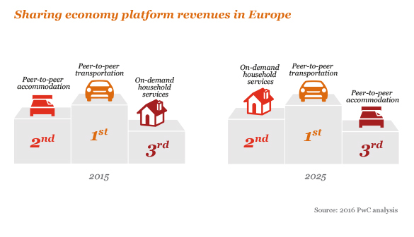As it stands, PwC predicts the sharing economy will grow at over a staggering 30 percent rate per year, with growth broad spread across the five most prominent sectors – collaborative finance, peer-to-peer accommodation, peer-to-peer transportation, on-demand household services, and on-demand professional services.