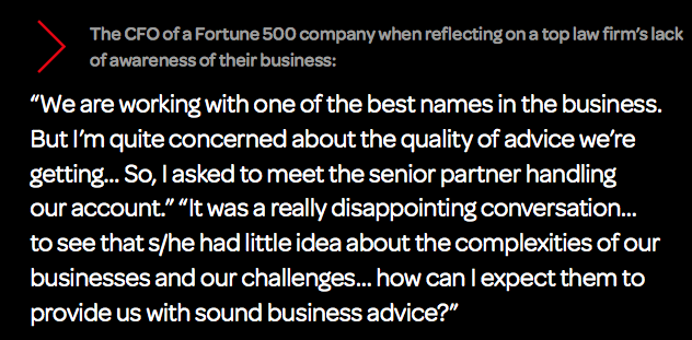 But more fundamentally it betrays an abysmal misunderstanding of the market forces at play. There is no doubt that the lasting and unforgiving economic climate has triggered a crisis that arguably was already in the making in the legal market before the 2008 financial crisis. Last year was yet another year of very modest growth as law firms continued to struggle with the interrelated impacts of sluggish demand for legal services, declining productivity, falling realization rates, and austerity measures intended to preserve profitability, according to a recently published report on the state of the legal market published by the Center for the Study of the Legal Profession at the Georgetown University Law Center, findings echoed by a report conducted jointly by DiPietro’s Citi Private Bank and Hildebrandt Consulting LLC.